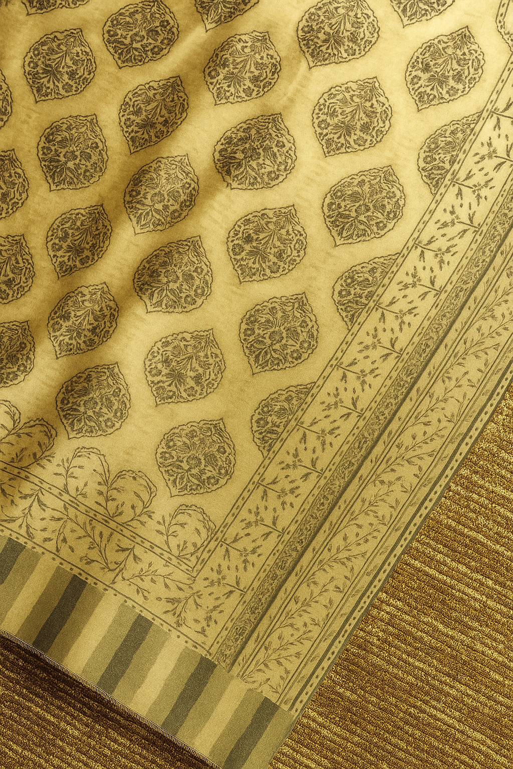Born from the hush of ancient courtyards and desert mornings, Mist of Kashan is woven from the finest Kashmiri pashmina in the noble Kani tradition. Its misty palette and flowing weave recall the elegance of Persian gardens kissed by dawn. Measuring 120 x 230 cm, this shawl drapes like a dream — light, warm, and forever refined. It is not just an accessory; it is the silence between poems.